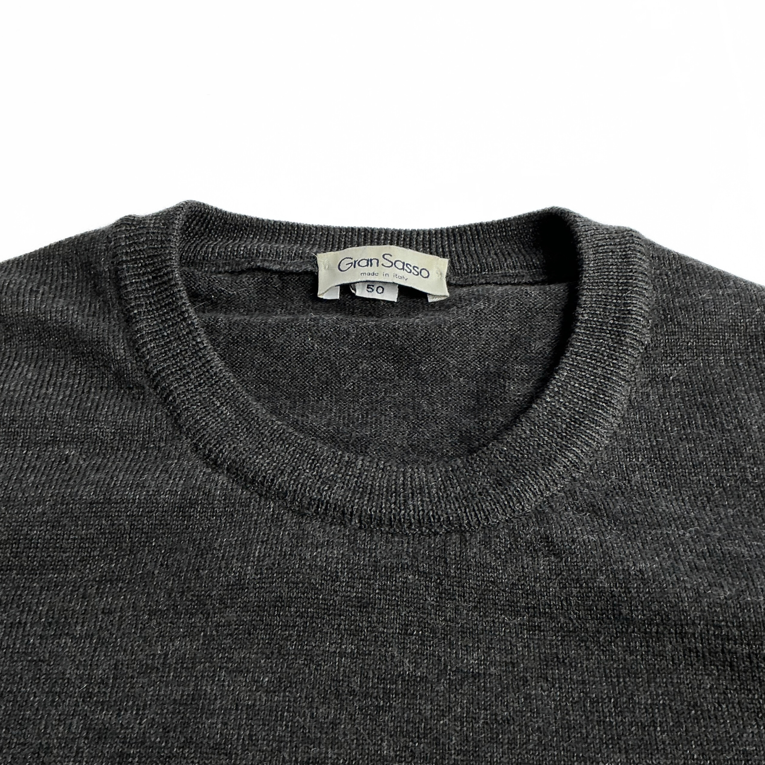 Charcoal grey. Made in Italy. Ribbed hem. Merino wool. Size 50. Please refer to the images for item condition.